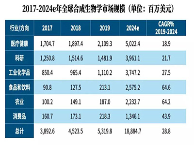 由此,合成生物學帶來的應用層面的市場空間十分廣闊。