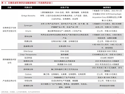 2、技術平臺:DNA閱讀、寫作和編輯技術的不斷進步、DNA測序時間和成本的持續(xù)降低等以多種方式驅(qū)動著合成生物學的發(fā)展,提供賦能技術型公司顯然是吃香的,如提供基因合成、基因測序和基因編輯等服務的上市公司。