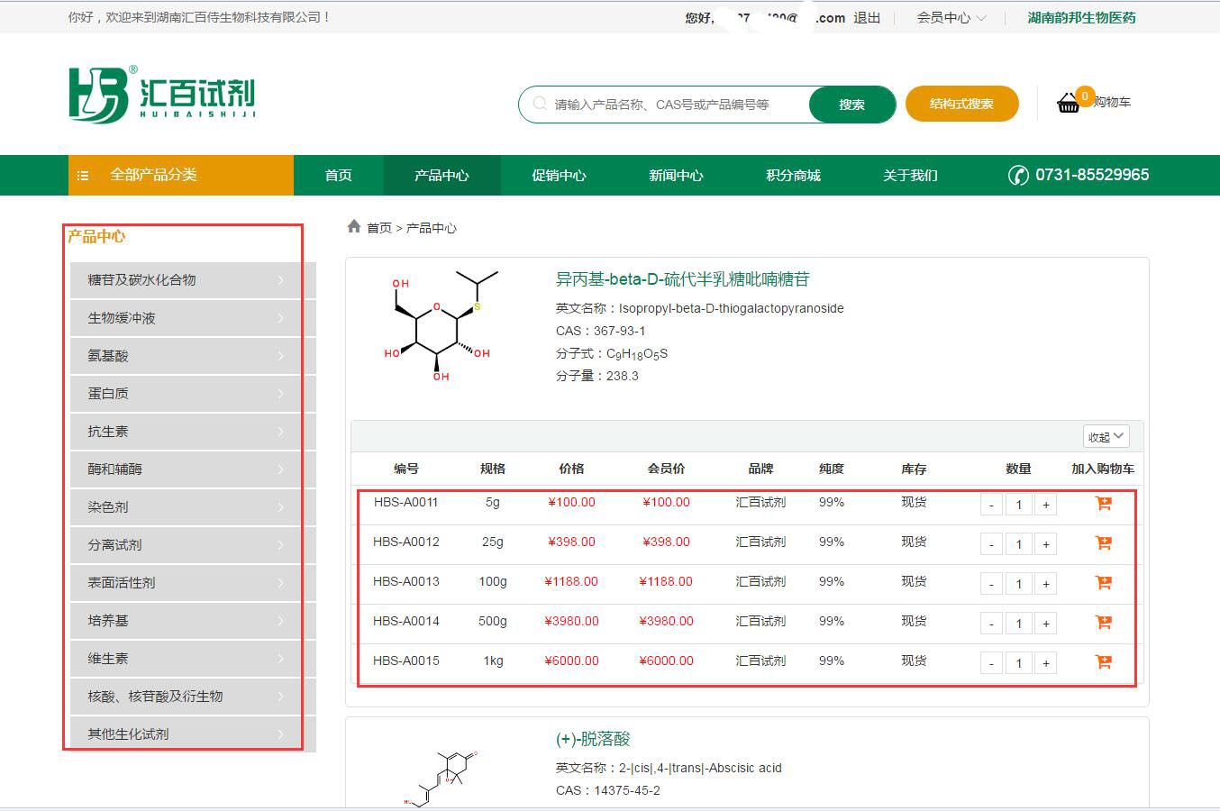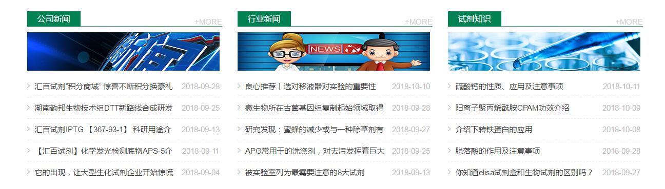 為了方便用戶更快捷的查找產(chǎn)品和及時了解行業(yè)資訊等內(nèi)容,我們建立了“匯百試劑”官方商城。匯百試劑網(wǎng)站秉承“信譽為企業(yè)生存之本”的宗旨。在布局上,首頁設有5大導航板塊,各板塊功能明確、內(nèi)容豐富,方便您快捷獲取想要的產(chǎn)品服務信息。