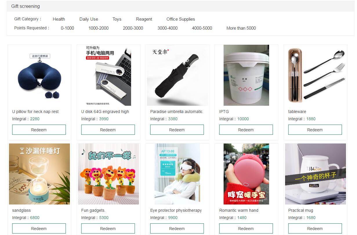 在匯百試劑商城下單后,將根據(jù)金額的多少沉淀相應(yīng)的積分,根據(jù)積分?jǐn)?shù)量可兌換相應(yīng)的禮品。其中禮品還包含不定時(shí)促銷的生化試劑品種哦!